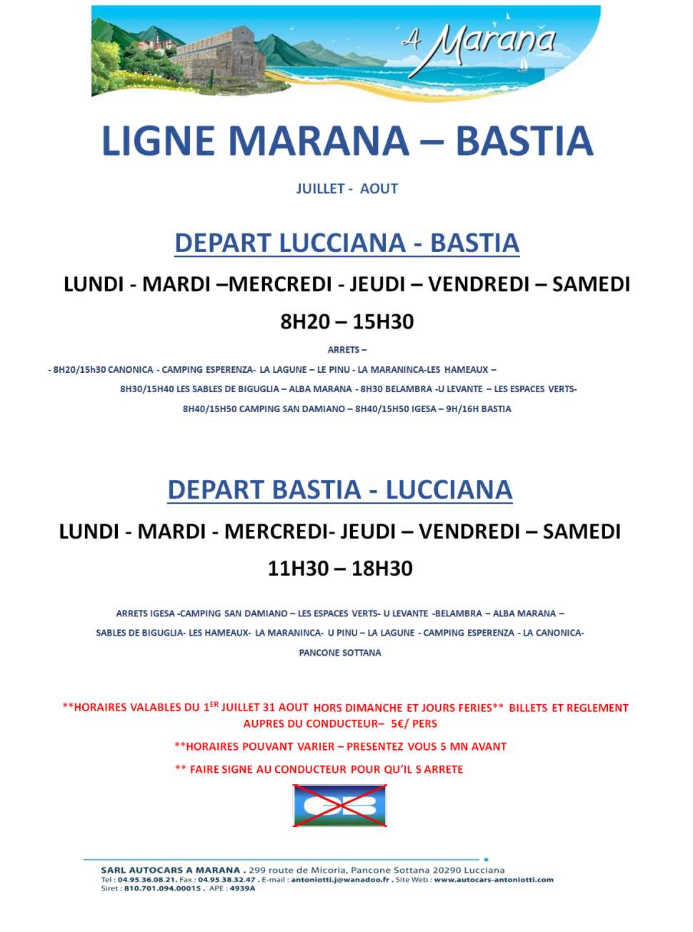 Bus : Bastia - Lucciana A Marana