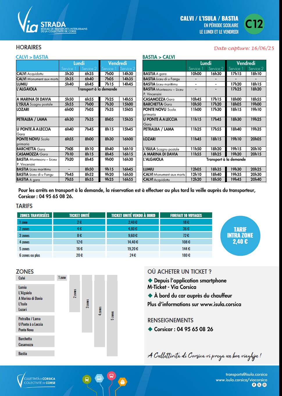 | Timetable and fares / Horaires et tarifs du transporteur Timetable and fares / Horaires et tarifs de la Collectivité de Corse | ||||